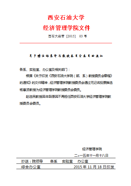关于聘任杨惠贤为教授委员会委员的通知